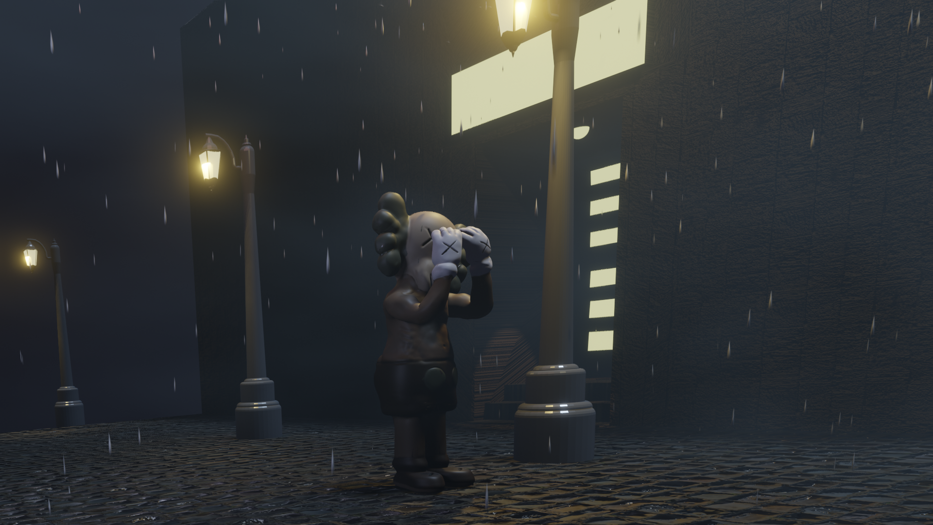 This piece was inspired by my favorite artist, KAWS. Also known as Bryan Donnelly. I really love his main character The Companion so I recreated his character using Blender and also added a twist to it.